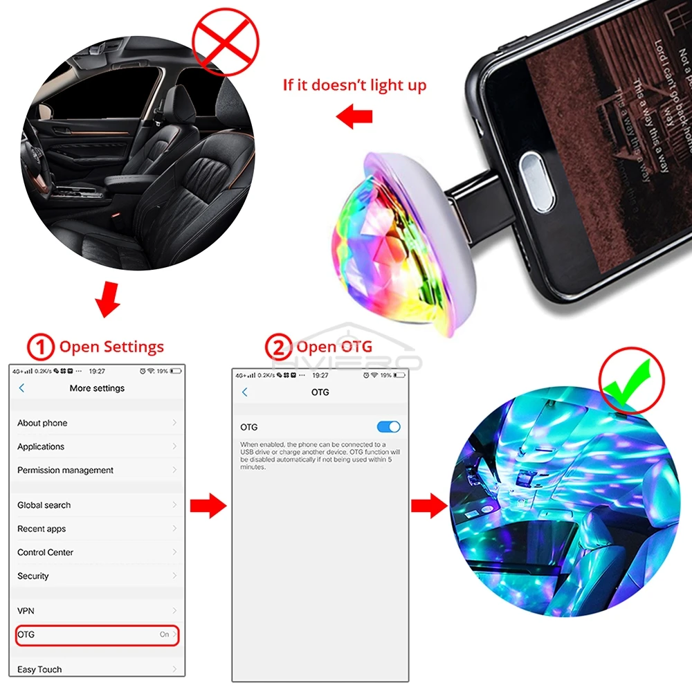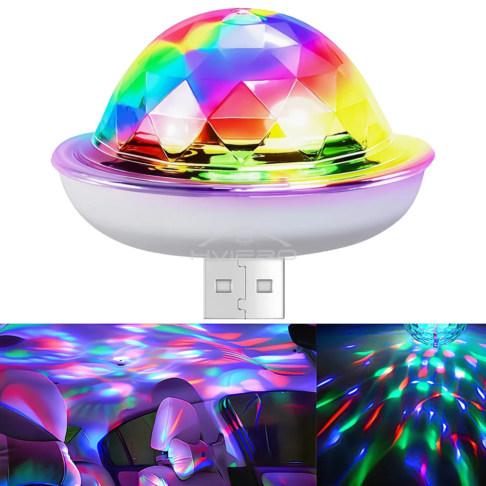 1Pcs Car Led Auto USB Ambient Light DJ RGB Mini Colorful Music Sound USB-C Interface for Apple Holiday Party Karaoke Atmospheric