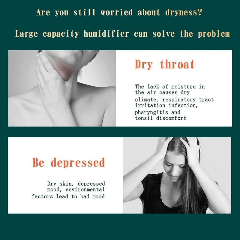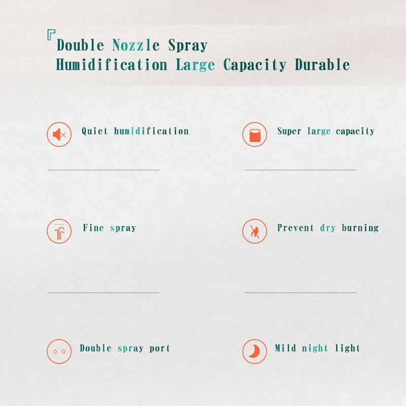 2000ml Large Capacity Dual Spray Humidifier USB Silent Water Replenisher Air Purifier for Home Bedroom Office