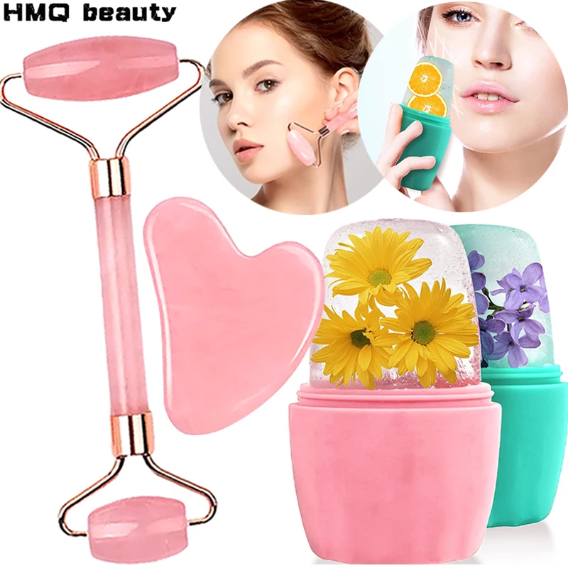 3/2Pcs Ice Face Roller Facial Skincare Massager Kit Heart-shaped Gua Sha Board Portable Skin Care Beauty Lifting Contouring Tool