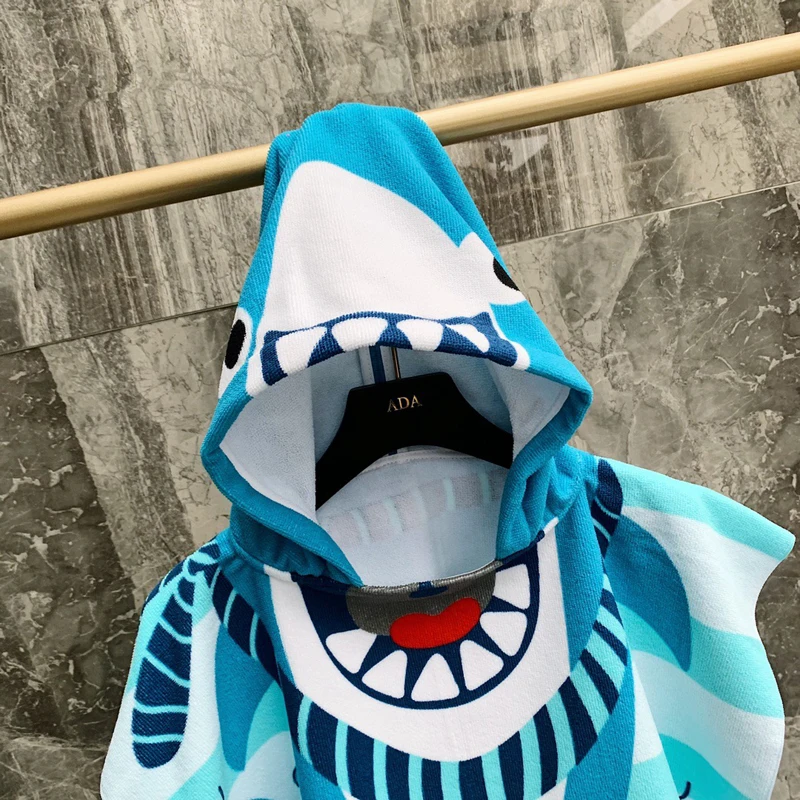60X120cm Cartoon Kids Hooded Bath Beach Poncho Towels Shark Cute Bathrobe Toddler Boys Girls Cloak Child Bathing Stuff Quick Dry