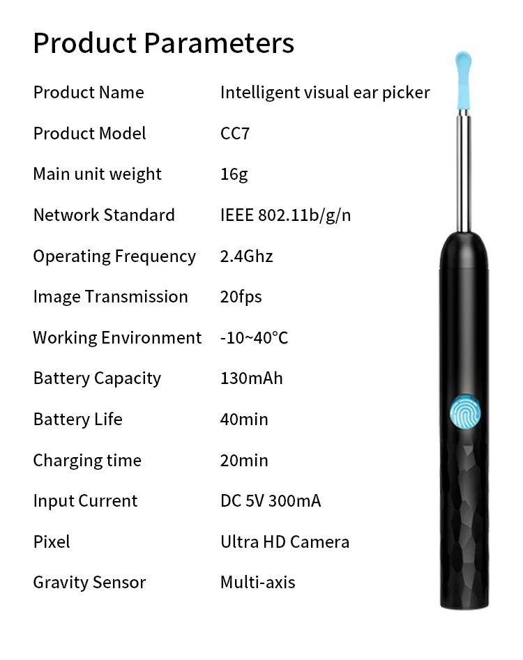 Ear Cleaner with Camera Wireless 8MP High Precision Earwax Removal Tool Ear Cleaner with Camera LED Light Endoscope with Tools