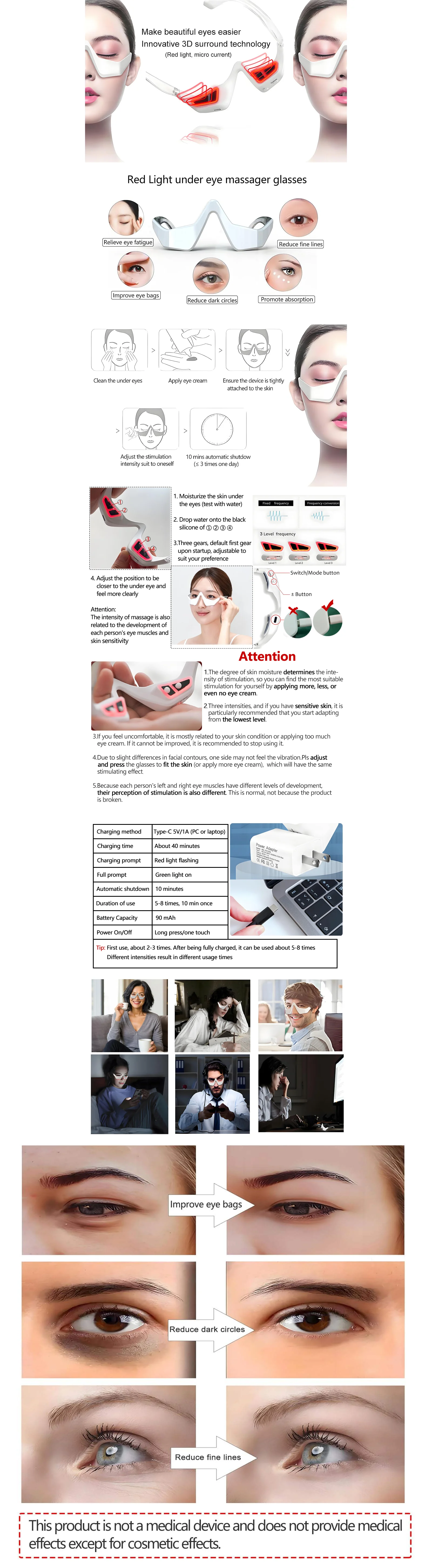 Electric 3D Eye Massager Micro-Current Red light Therapy Hot Compress Dark Circles Eye Bag Removal Relieve Eyes Bags Wrinkles