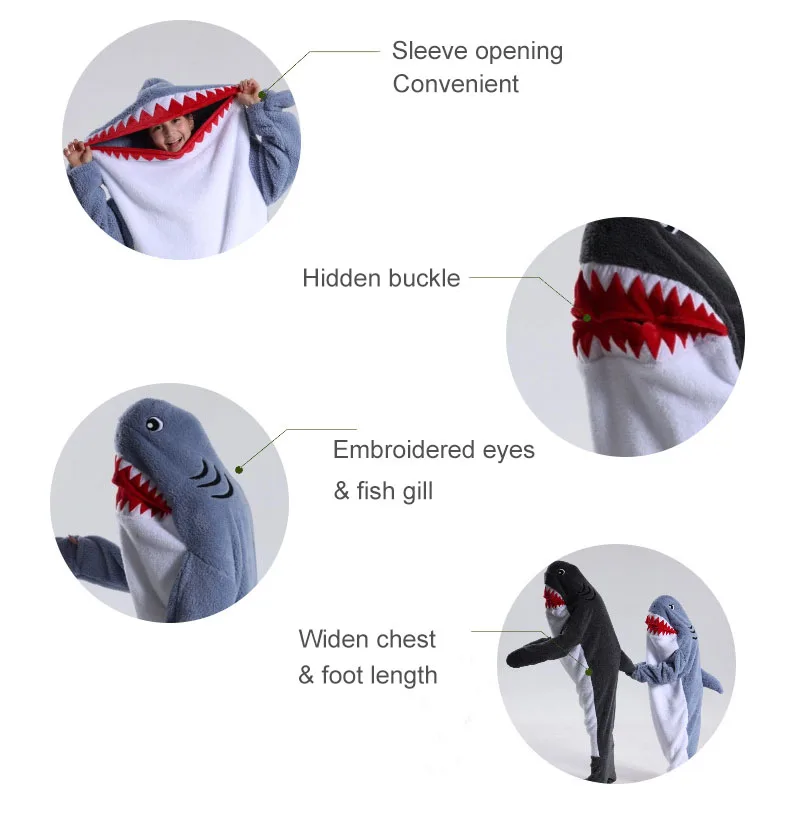 Funny Cosplay Shark Onesie Costume Suit Adult Pyjama Cartoon Halloween Christmas Carnival Sleepwear Jumpsuit Kids Clothes Hombre