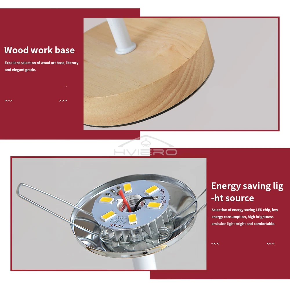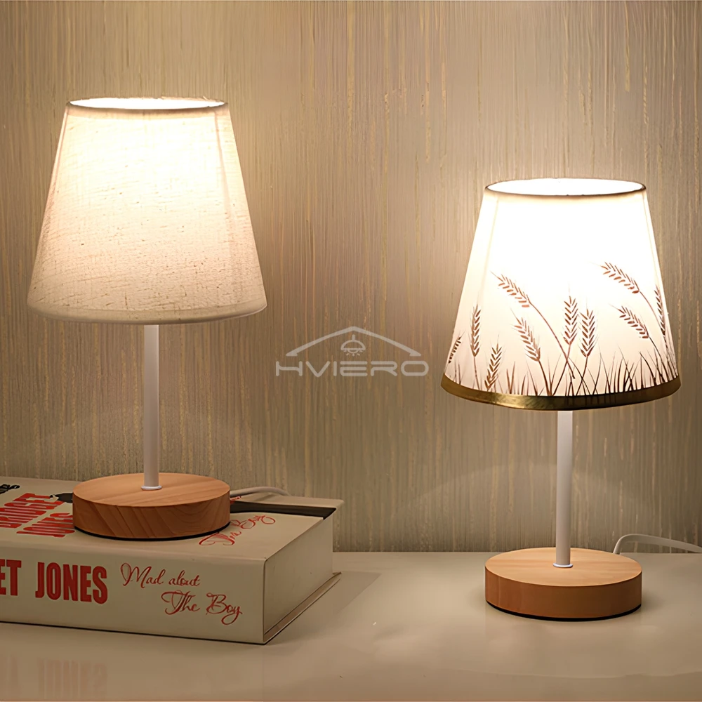 Solid Wood Cloth Nordic Decorative Table Bedroom Bedside Lamp Simple Creative Remote Control Small Night Light Energy Saving Led